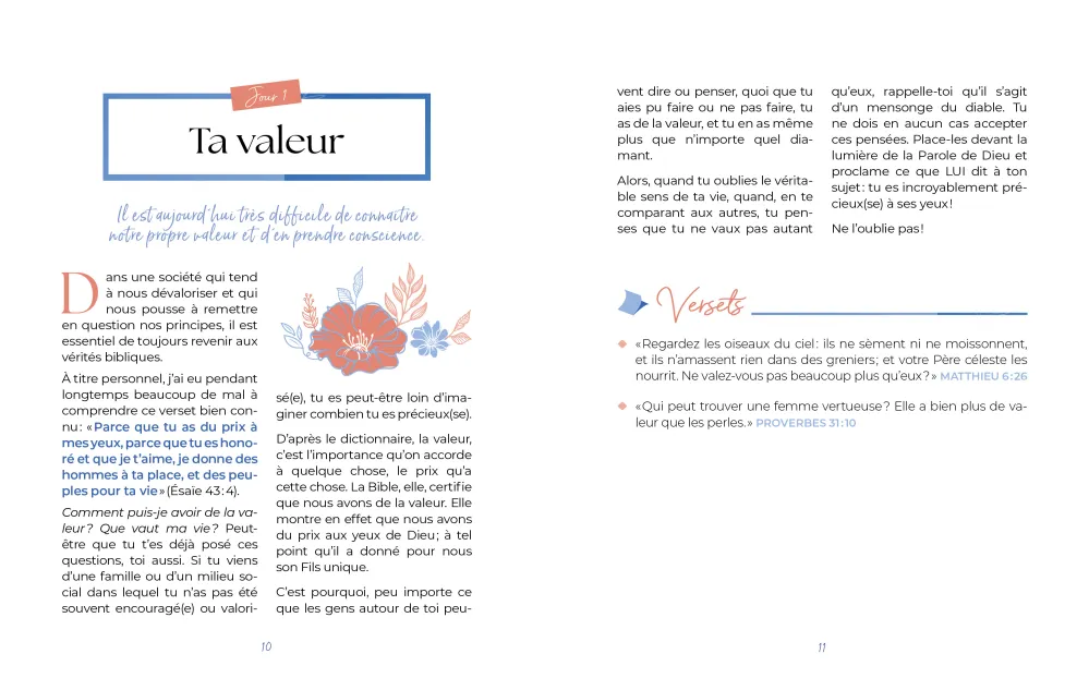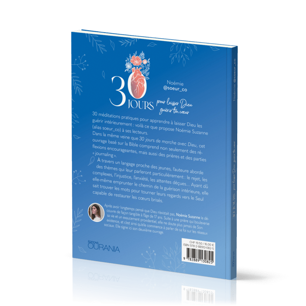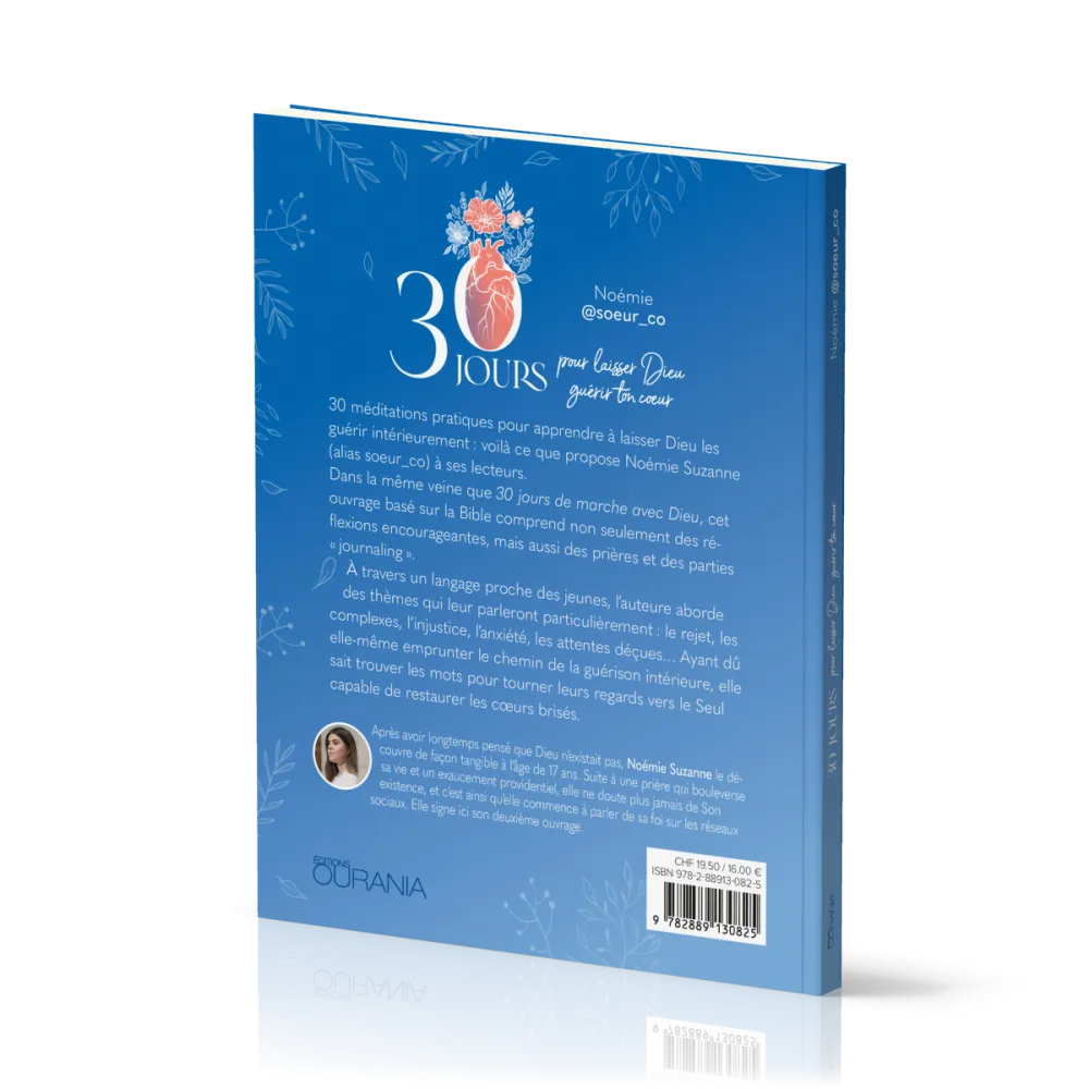 30 méditations pratiques pour apprendre à laisser Dieu les guérir intérieurement : voilà ce que propose Noémie Suzanne (alias soeur_co) à ses lecteurs. Dans la même veine que 30 jours de marche avec Dieu, cet ouvrage basé sur la Bible comprend non seulement des réflexions encourageantes, mais aussi des prières et des parties „journaling“ .