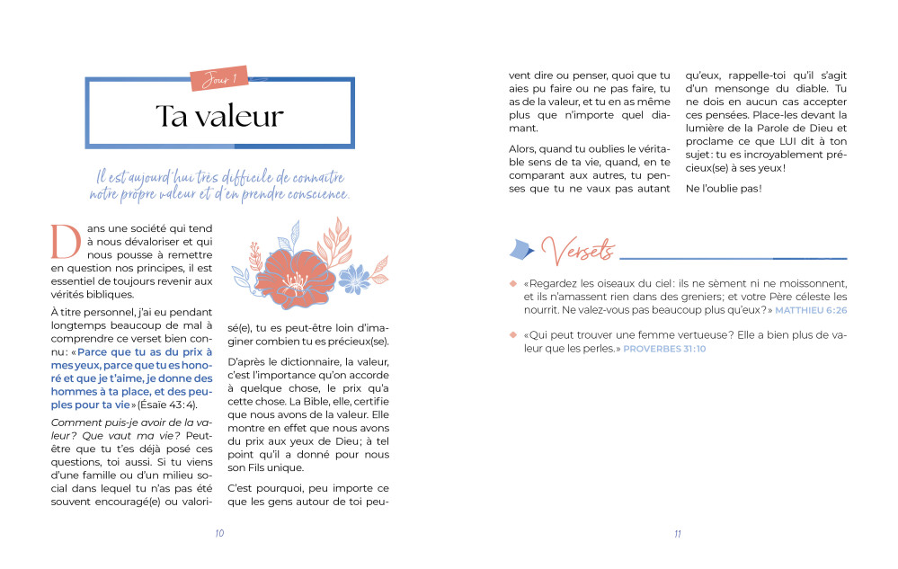A travers un langage proche des jeunes, l’auteure aborde des thèmes qui leur parleront particulièrement : le rejet, les complexes, l’injustice, l’anxiété, les attentes déçues… Ayant dû elle-même emprunter le chemin de la guérison intérieure, elle sait trouver les mots pour tourner leurs regards vers le Seul capable de restaurer les coeurs brisés.