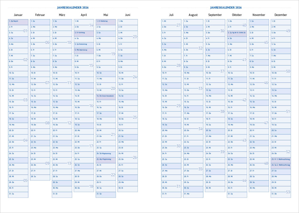 Moderne Taschenagenda mit Bibelversen und vielen durchdachten Funktionen. Abgedrundete Ecken, Abrissperforation, Spiralbindung.