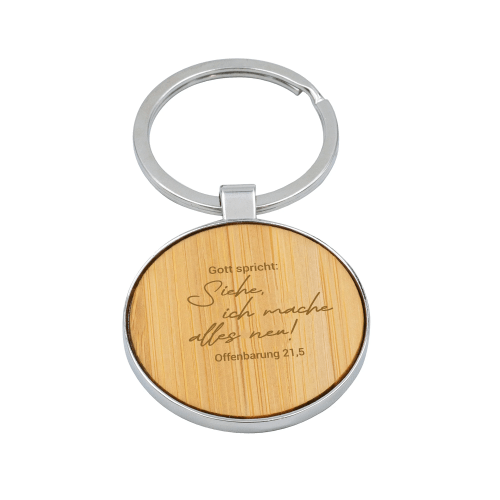 Schlüsselanhänger Jahreslosung 2026 Eleganter Schlüsselanhänger aus hochglänzendem Metall in Form eines Kreises mit Holz-Inlay an stabilem Metall-Schlüsselring. Gesamtlänge: 4,8 cm,