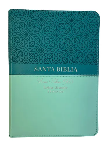 Biblia Reina Valera 1960 tamaño portátil Letra Grande 11 puntos Imitación Piel Turquesa/Turquesa con flores. Cierre e índice.Col