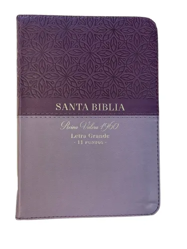 Biblia Reina Valera 1960 tamaño portátil Letra Grande 11 puntos Imitación Piel Lila/lila con flores. Cierre e índice.Colección b