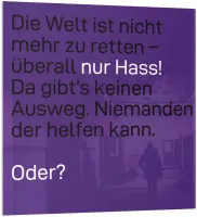 "Die Welt ist nicht mehr zu retten – überall nur Hass! Da gibt’s keinen Ausweg. Niemanden der helfen kann. Oder?"