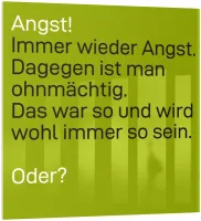 "Angst! - Immer wieder Angst. Dagegen ist man ohnmächtig. Das war so und wird wohl immer so sein. - Oder?"
