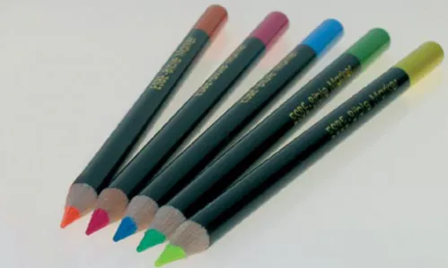 Bibelmarkierstifte. Fünf Trockenstifte in den Farben orange, rot, blau, grün und gelb. Im praktischen Etui.