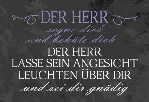 Zum Schenken, Schmücken und Nachdenken. Sprüche, die jede Wand verschönern! im Format 33 cm x 22,6 cm auf Hartpappe Kuvert mit Aufhänger Vintage-Design Biblisch orientierter Text: Der Herr segne dich und behüte dich. Der Herr lasse sein Angesicht leuchten über dich und sei dir gnädig.