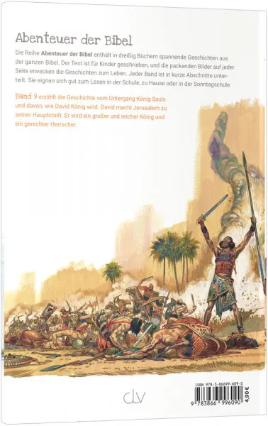 Band 9 erzählt die Geschichte vom Untergang König Sauls und davon, wie David König wird. David macht Jerusalem zu seiner Hauptstadt. Er wird ein grosser und reicher König und ein gerechter Herrscher.