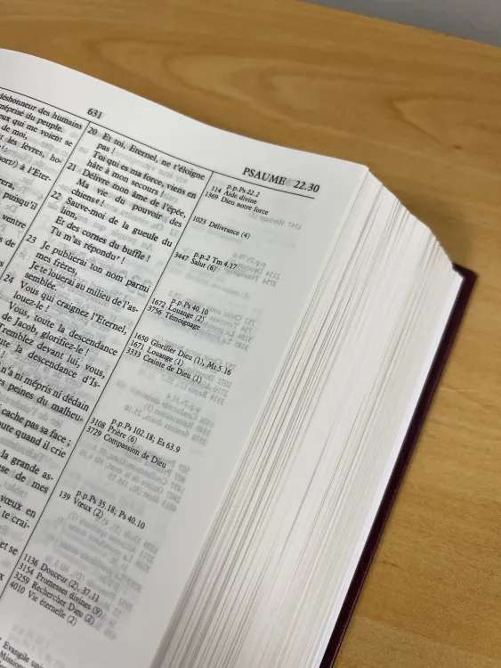 Cette Bible d’étude contient un système de références chainées qui permettent de découvrir une série de textes bibliques sur un même thème.