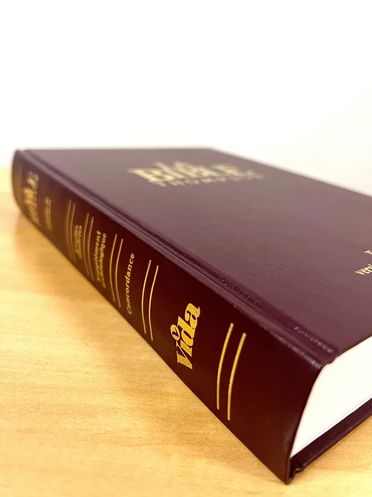 Bible Thompson, cartonnée, bordeaux, avec commentaires Thompson et concordance et index. Paroles de Jésus écrites en rouge