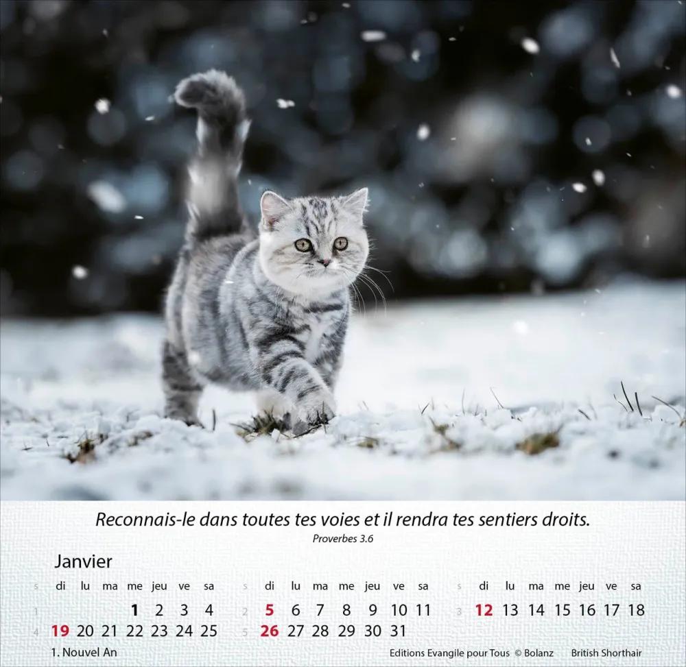 12 motifs de chats, avec versets bibliques. Avec spirale et support pour poser. Cartes postales à découper.