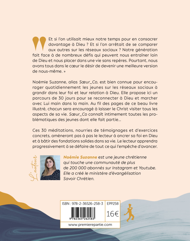 Dans cet ouvrage, tout comme elle le fait chaque jour sur les réseaux, l’auteure aide les jeunes à s’ancrer simplement dans une vie chrétienne. Elle propose un parcours d’un mois qui permet à chacun de faire le point sur sa relation à Dieu, en abordant les questionnements des nouvelles générations.