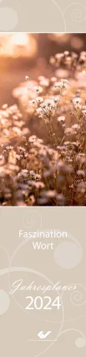 Vierfarbig gestalteter Streifenplaner mit einer Postkarte und Bibelvers auf jedem Monatsblatt. Ideal, um Geburtstage und Familientermine im Blick zu behalten. PLaner Terminer