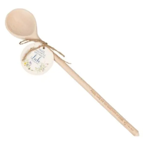 Ein tolles Geschenk für alle, die mit Liebe kochen: der runde Kochlöffel aus naturbelassenem, nicht gewachstem Buchenholz! Auf dem Stiel ist der Text der Jahreslosung 2024 eingraviert (Lasergravur Holzlöffel):