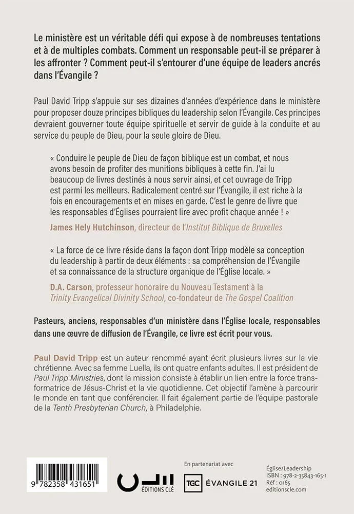 L’auteur s’appuie sur ses dizaines d’années d’expérience dans le ministère pour proposer douze principes bibliques du leadership selon l’Évangile. Ces principes devraient gouverner toute équipe spirituelle et servir de guide à la conduite et au service du peuple de Dieu, pour la seule gloire de Dieu.