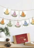 Inhalt: 24 Impulskarten für den Advent mit Fragestellungen und Aktionen und biblischen Weisheiten 24 Holzklammern 1 Kordel zum Aufhängen